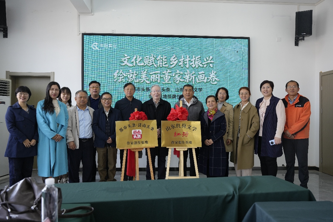 活動伊始,一行人實地走訪了易豐農(nóng)業(yè)超鮮蛋農(nóng)場與研學(xué)基地,近距離感受現(xiàn)代化農(nóng)業(yè)的發(fā)展活力與鄉(xiāng)村產(chǎn)業(yè)振興的鮮活實踐。在座談交流環(huán)節(jié)中,張總講述了董家村從市級貧困村蛻變?yōu)槿珖拿鞔宓膴^斗歷程,描繪了鄉(xiāng)村振興的美好藍(lán)圖。2014年的董家村還是市級貧困村,同年,市派第一書記劉振強(qiáng)駐村后,深入各戶調(diào)研訪談,協(xié)調(diào)資金完善基礎(chǔ)設(shè)施,村容村貌煥然一新,筑牢了發(fā)展根基。此后,又引入了產(chǎn)業(yè),光伏項目、熏棗種植,打破“靠天吃飯”模式。懷著對故土的眷戀,他受邀回到董家村,開啟產(chǎn)業(yè)重構(gòu)+機(jī)制創(chuàng)新探索,一步步構(gòu)建三產(chǎn)融合生態(tài)鏈,從流轉(zhuǎn)土地發(fā)展養(yǎng)殖業(yè),到盤活閑置宅基地打造特色民宿;從建起加工工坊生產(chǎn)農(nóng)家特產(chǎn),到打造濟(jì)水春秋博物館、引入省級非遺龍格黑陶發(fā)展研學(xué)旅游;再到去年升級智慧養(yǎng)殖模式,推出“長田樂享濟(jì)蛋”品牌,村里的經(jīng)濟(jì)實力日益壯大;“鄉(xiāng)村振興不僅要有‘產(chǎn)業(yè)的厚度’,更要有‘文化的溫度’?!?張總強(qiáng)調(diào),為此,董家村多措并舉推進(jìn)文化建設(shè):建起鄉(xiāng)村書屋,讓墨香浸潤人心;扶持龍格黑陶非遺項目,讓傳統(tǒng)技藝薪火相傳;邀請文化下鄉(xiāng)團(tuán)隊,把春聯(lián)、戲曲送到村民家門口?!敖裉旒t荷文學(xué)社創(chuàng)作基地掛牌,更是為董家村文化建設(shè)添上濃墨重彩的一筆,將讓文學(xué)之花在鄉(xiāng)村綻放,讓鄉(xiāng)村故事通過筆墨走向更遠(yuǎn)的地方?!睆埧偙硎?,如今的董家村已經(jīng)成為全國文明村,但未來任重而道遠(yuǎn),作為董家村支部書記,未來將以黨建為引領(lǐng),聚焦四大方向,促進(jìn)董家村高質(zhì)量發(fā)展。
